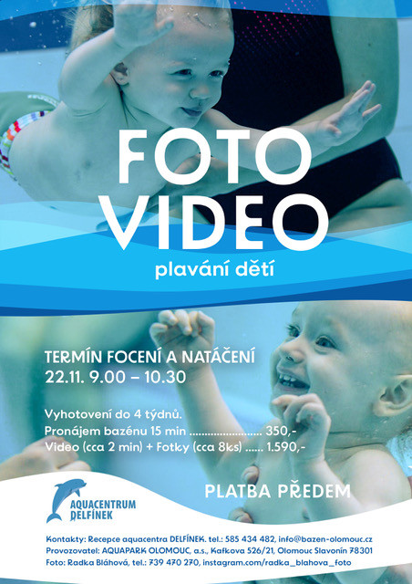 V Aquacentru Delfínek ve spolupráci s Radkou Bláhovou nabízíme pro naše malé plavce možnost podvodního focení a natáčení.
